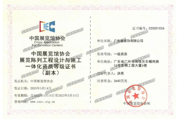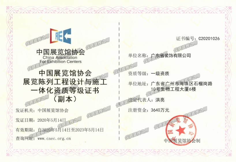 展覽陳列工程設(shè)計(jì)與施工一體化資質(zhì)
